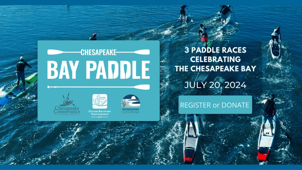 The Bay Paddle is on Saturday, July 20, 2024, hosted at the Kent Island Outrigger Canoe Club. 100% of your registration fee is tax deductible as a charitable donation and will be donated to Waterkeepers Chesapeake, Oyster Recovery Partnership, and Chesapeake Conservancy.