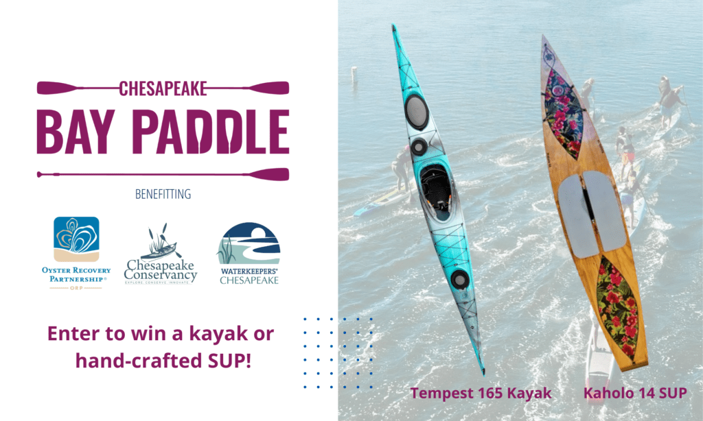 los Paleta de la bahíaLa misión de es ayudar a proteger la Bahía de Chesapeake colaborando con Oyster Recovery Partnership para plantar más ostras, con Chesapeake Conservancy para apoyar sus esfuerzos por designar la Bahía como Parque Nacional y con Waterkeepers Chesapeake para ayudar a mantener las aguas y los ríos de la Bahía saludables. Bay Paddle beneficiará a estas tres organizaciones sin fines de lucro.