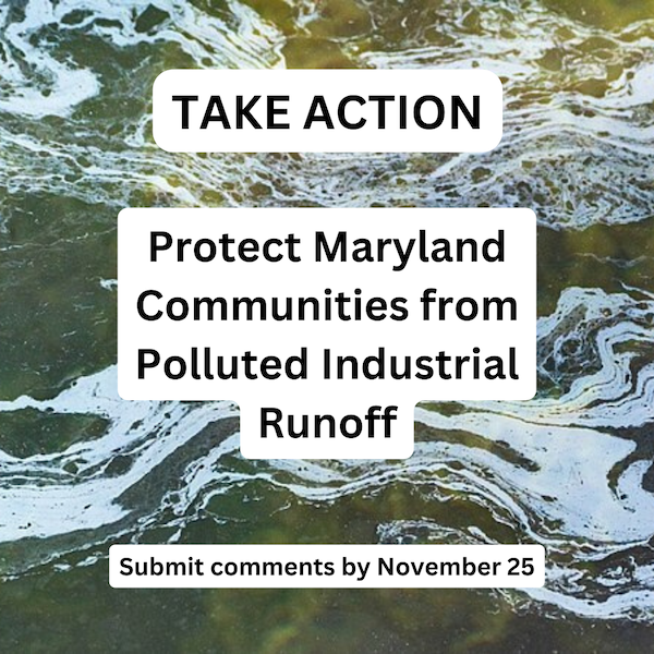El Departamento de Medio Ambiente Maryland acepta comentarios públicos hasta el sábado 25 de noviembre sobre el permiso general que regula las aguas pluviales que fluyen de las instalaciones industriales. Esta escorrentía puede incluir sustancias tóxicas como mercurio, PFAS y metales pesados que pueden tener graves impactos en la salud. Este permiso regula por sí solo la contaminación de casi 300 instalaciones en la región de Baltimore y más de 100 sitios industriales en las cuencas hidrográficas de Gunpowder, Bush, Bird y Middle River. En total, este permiso rige para más de 1.400 instalaciones industriales Maryland.