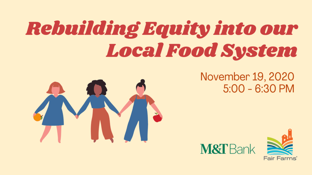 Disfruta el Granjas justas campaña en línea para Reconstruyendo la equidad en nuestro sistema alimentario local en Jueves 19 de noviembre, 17:00 – 18:30 horas para una discusión sobre cómo la pandemia global de COVID-19 ha iluminado las desigualdades existentes en nuestros sistemas alimentarios locales. Junto con los desafíos planteados por la pandemia de COVID-19, es importante reconocer el movimiento contra la desigualdad racial. Tenemos la oportunidad de rediseñar nuestro sistema alimentario para que sea más justo, equitativo y resistente frente a las crisis. RSVP para recibir un enlace al evento en línea.