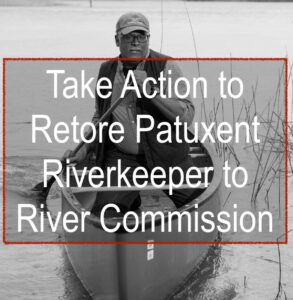 Toma acción hoy para pedir a sus legisladores Maryland que reincorporen a los defensores ambientales y comunitarios a la Comisión del Río Patuxent. SB367 & HB716 patrocinado por el Senador Paul Pinsky, la Del. Mary Lehman y muchos otros harían del Patuxent Riverkeeper un miembro permanente de la Comisión del Río Patuxent.