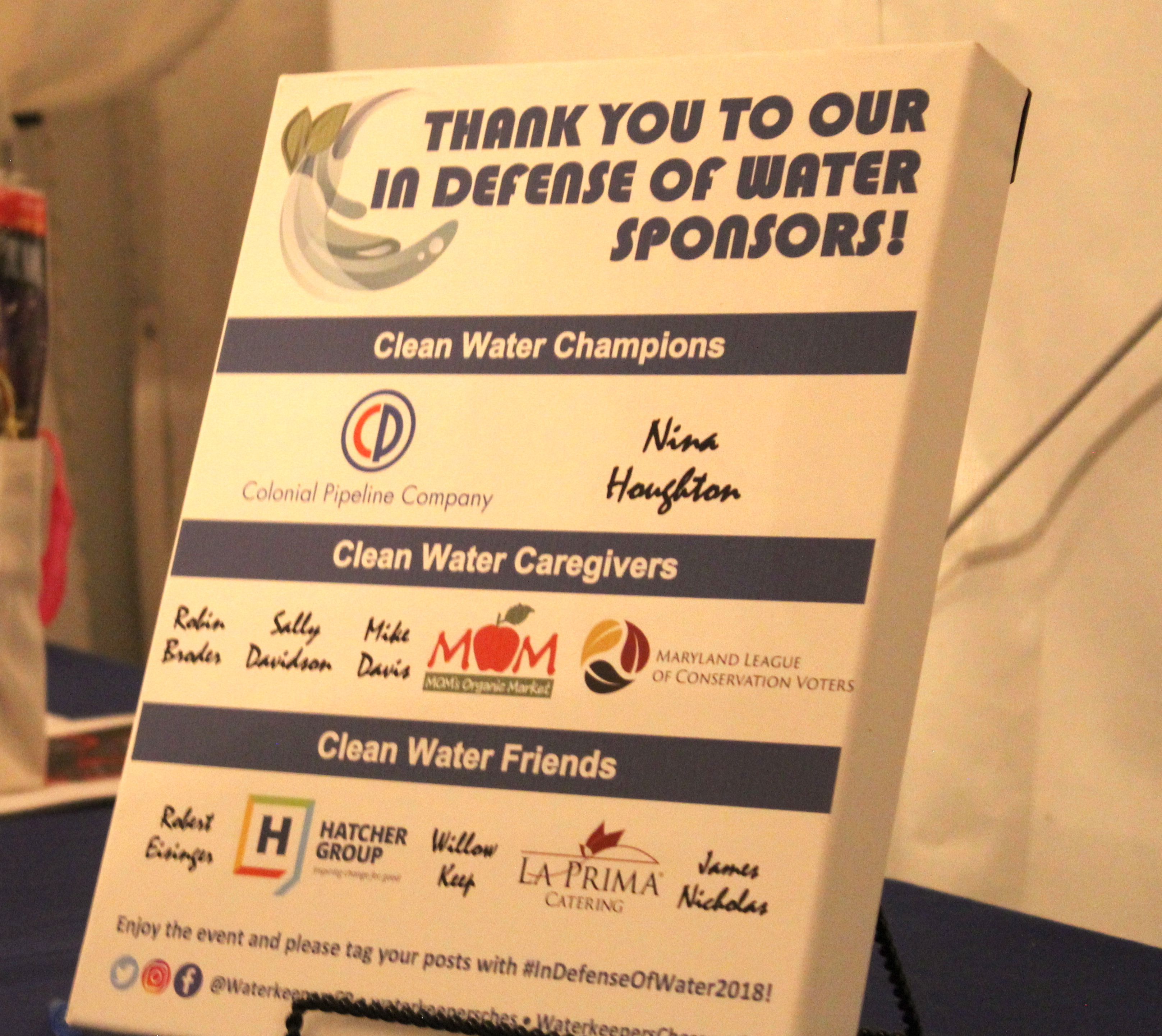 Con el apoyo de nuestros generosos patrocinadores, donantes e invitados, recaudamos más de $30,000 en el evento de este año. En Defensa del Agua. Nuestros invitados disfrutaron de comida local fresca de Catering La Prima y cerveza de Elaboración de agua dulce, mezclado con Waterkeepers, ranurado al Banda de Jazz Wendy Steve y ganó emocionantes artículos en una subasta silenciosa. Este año, honramos Nick DiPasquale, exdirector del Programa de la Bahía de Chesapeake, por su dedicación a la restauración de la Bahía de Chesapeake y todos sus afluentes. Los fondos recaudados este año beneficiaron a nuestra Conowingo Dam Campaña. Agradecemos a todos nuestros patrocinadores, especialmente a Colonial Pipeline y Nina Houghton, por apoyar nuestro trabajo y hacer posible este evento.