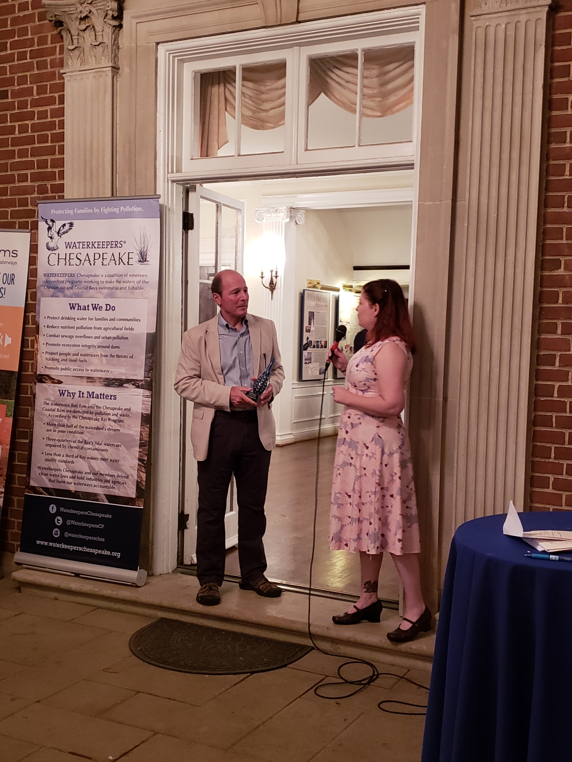 With the support of our generous sponsors and guests, we raised over $30,000!! Our guests enjoyed fresh, local food from La Prima Catering and beer from Sweetwater Brewing, mingled with Waterkeepers, grooved to the Wendy Steve Jazz Band and bought exciting silent auction items. This year, we honored Nick DiPasquale, former Director of the Chesapeake Bay Program, for his dedication to restoring the Chesapeake Bay and all of its tributaries.