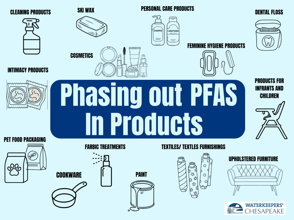 Sponsored by Sen. Sara Love and Del. Sheila Ruth, the Phasing Out PFAS in Consumer Products Act (HB1022/SB686) builds on previous legislation passed in Maryland that banned PFAS in firefighter foam (AFFF), carpets and food packaging.