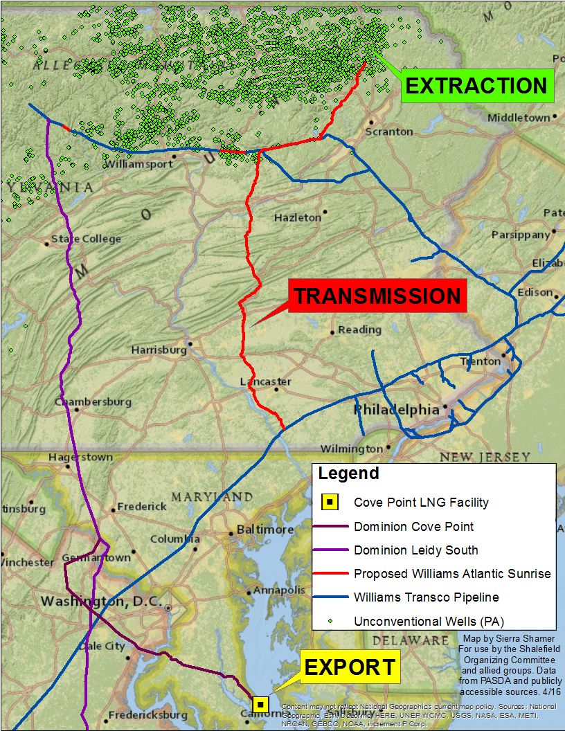 Dominion Energy’s plans to build a natural gas compressor station across Potomac River from Mount Vernon revealed there is more to it than spoiling the view. There will be a spider web of pipelines bringing fracked from the Atlantic Sunrise Pipeline in Pennsylvania to the Cove Point LNG export facility on the Chesapeake Bay. Even the Eastern Shore is being threatened by 171-mile fracked gas pipeline starting in Rising Sun (Cecil County), passing through all Eastern Shore counties (except for Worchester), before crossing into Virginia to end at a proposed power station in Accomack County.