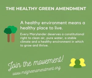 Maryland Healthy Green Amendment: Our first priority isn’t a bill but a constitutional amendment. Getting this approved is more complicated than passing a bill. A Maryland Healthy Green Amendment would guarantee the right to clean air, pure water, a stable climate, and a healthy environment for all Marylanders. The Amendment would clarify the responsibility of state government to protect Marylanders, while empowering Marylanders, local communities and the state to enforce these rights. The Amendment would shore up gaps in existing laws, strengthen enforcement and compliance, and assure that everyone, no matter what zip code they live in, are equally protected from environmental degradation.